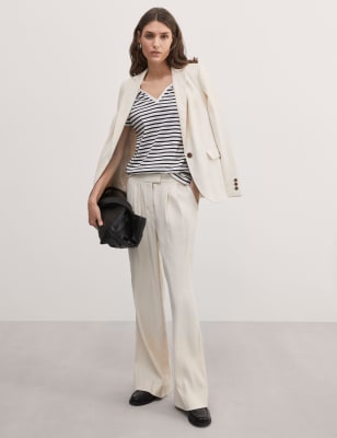 Every capsule wardrobe needs a short-sleeved top like this one by Jaeger. It's made in a comfy regular fit and crafted from pure cotton that's been mercerised for a subtle sheen and silky-smooth feel. Natural stretch in the fabric gives extra comfort while frill detailing gives a statement finish. Tuck yours into wide-legged trousers for a look that balances comfort and style.