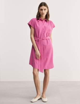 Blended with silk, this cotton-rich mini dress by Jaeger is all about elevated style. The striped, clean-cut design comes in an easy relaxed fit, with raglan three-quarter sleeves and gathered, button-fastening cuffs. Tie detailing and subtle gathering at the notched v-neckline add to the flattering finish, while pockets at the side are a practical touch. Style with flatform sandals and statement accessories for an effortless summer look.
