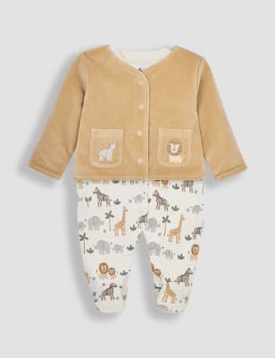 The quick zip fastening on this JoJo Maman Bébé sleepsuit makes night-time changes a breeze. It's crafted from striped pure cotton fabric, with two sweet appliqué ducks on the front, plus playful feet that baby will love exploring. This long-sleeved style features a zip guard at the top to protect their delicate skin.