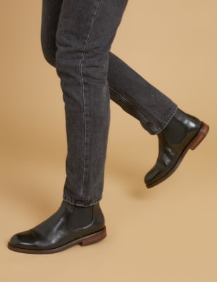 These Chelsea boots by Jones Bootmaker are crafted with intricate cut-out detailing for a sophisticated touch. A stretchy panel at the sides makes them easy to pull on, along with handy tabs at the cuff. Supple leather offers comfortable all-day wear, while cleated soles provide extra grip.