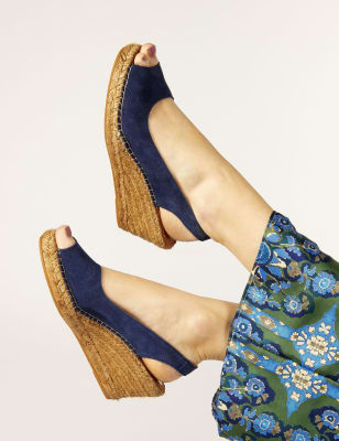 Jones Bootmaker Women's Leather Wedge Slingback Shoes - 3 - Navy, Navy,Gold