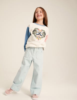 Joules Girls Pure Cotton Striped Floral Gilet (2-12 Yrs) - 7y - Blue Mix, Blue Mix