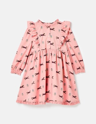 Joules Girls Pure Cotton Striped Frill Top (2-12 Yrs) - 2y - Pink Mix, Pink Mix
