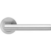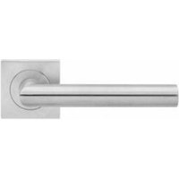 Karcher Madeira 26 x 19mm diameter lever on square rose in satin stainless steel finish on a three piece rose sized 52 x 52 x 10mm. Suitable for heavy use and tested to EN1906 category of use 3 and durability level 7. Supplied & sold in pairs complete with fixings. Size: 135mm lever. Finish: Satin stainless steel.