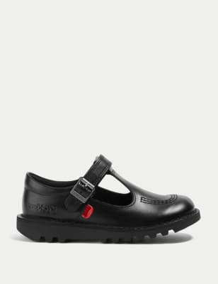 These durable leather school shoes from Kickers are a smart choice for busy feet. A riptape strap allows for easy on and off, while the padded collar and cushioned footbed ensure a comfortable feel all day long. Sporty detailing adds fresh appeal to the classic style, which is finished with the iconic red and green tabs.