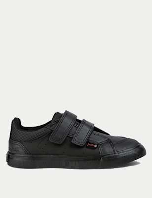 Kickers Girls' Leather Riptape T-Bar School Shoes (12½ Small - 2½ Large) - 12.5S - Black, Black