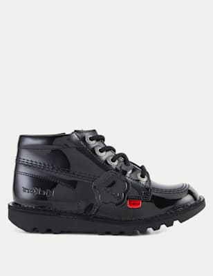 Kickers Girls' Patent Leather School Shoes - 7 S - Black Patent, Black Patent