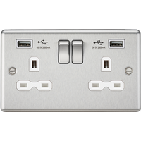 This charger socket is a great finishing touch to any modern home. Decorative rounded edge metal design with matching metal rockers. Built in Dual USB Charger - 13A Switched socket - Dual USB Charging 5V DC2.4A (shared) - Decorative round edge design with built in gasket - Certified to BS1363-2:2016, EN 62368-1, EN 62680-1-1, EMC and ErP Certified - Minimum mounting box depth 25-35mm* *dependent on wiring conditions WE RECOMMEND YOU ALWAYS USE CERTIFIED USB CABLES FOR SAFETY AND TO ENSURE COMPATIBILITYTechnical Specification:Projection (mm): 7.5Min. Mounting Box Depth (mm): 25-35mm (dependent on wiring conditions)Construction: Premium grade steelFinish: Brushed ChromeClass: IIP Rating: IP20Primary Voltage: 230V 50HzEarth Terminal: YesDimensions: Height: 86mmWeight: 0.269KgWarranty: 2 Years