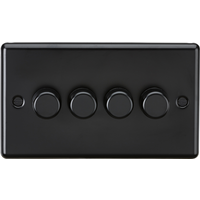 Perfect finishing touch to any modern home, rounded edge metal design with matching metal cap 10-200W incandescent10-150W mains voltage halogen10-150W LV halogen with electronic transformer5-150W LED dimmable lamp2-wayPush on/offRotary action dimmerAnti-FlickerAuto trimmingSwitchable from Trailing Edge to Leading EdgeOverload and Over Temperature protectionInrush Current Limiter (ICL)Minimum mounting box depth: 25mmNB: PLEASE CHECK WITH LAMP MANUFACTURER FOR COMPATIBILITYTechnical SpecificationHeight: 87.75Width: 87.75Projection: 7.5Min. Mounting Box Depth: 25mmConstruction: Premium grade steelFinish: Matt BlackClass: IIP Rating: IP20Primary Voltage: 230V 50HzEarth Terminal: YesTerminal: ScrewTechnical Specification:IP Rating: IP20 Colour: Matt BlackDimensions: Height: 88mmWeight: 0.135KgWarranty: 2 Years