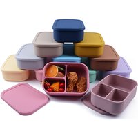 LB03 Custom Food Foldable Collapsible 2 3 Compartment School Silicone Bento Lunch Box for Kids Adult