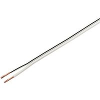 Labgear high quality Speaker cable.  A quality, well constructed product which is easily stripped and worked with. 0.22mm² copper conductor size, External diameter 4.5mm 2 Core cable, in figure of 8 configuration Plain annealed high quality 79 strand copper conductors, copper screened, sheathed with White PVC Oxygen free Copper construction for improved transmission Highly Flexible & Easy to conceal (such as under carpet etc). Maximum current of 18A. Due to its low impedance, the cable can be run for long lengths without significant loss of quality and clarity.  1 Year Manufacture warranty included Compliant to EN 50117 standard General purpose Speaker cable suitable for use mainly in the wiring of speakers in home entertainment systems, surround sound and car audio. High performance cable which ensures low loss and crystal clear sound. Ideal for multi room installation. This product will be supplied in a single length up to 100m, unless otherwise requested. A wide range of cable accessories to match this cable - Cable Clips, 3A Terminal Cconnector, Gel Crimps.
