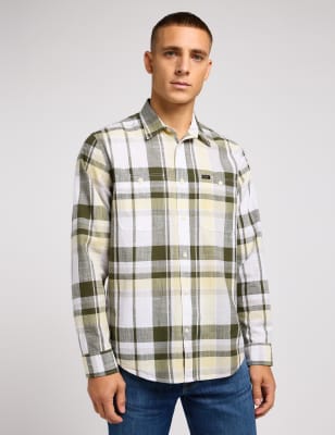 Lee Men's Pure Cotton Overshirt - M - Green, Green Best Price: £100.00 from Marks and Spencer Buy for best price Description This pure cotton overshirt from Lee is a versatile layering piece. It's cut in a relaxed fit for easy wear, with a neat collared neckline and a button-through front. Two patch pockets on the chest add a traditional workwear feel. Review This Product Related Products Lee Men's 2pk Pure Cotton Crew Neck T-Shirts - Multi, Multi,Black/White Best Price: £30.00 Compare prices Lee Men's Linen Rich Striped Shirt - M - Green, Green Best Price: £50.00 Compare prices Lee Men's Worker Pure Cotton Check Flannel Shirt - Dark Green, Dark Green Best Price: £70.00 Compare prices