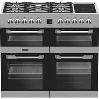This Cuisinemaster range cooker's striking, contemporary design challenges the thinking that range cookers are reserved for old country homes. Three separate ovens, a slow cooking setting, and a dedicated grill give you the flexibility to cook multiple dishes at once. And, the five-burner gas hob also includes a wok burner and griddling area, so you'll be able to stir-fry your spicy rice noodles while your salmon chargrills on the griddle. 3 Ovens Flexible cooking 5 Burner gas hob including wok burner and griddle on the ceramic hob provides flexible hob cooking True Fan Cooking Better cooking results and faster cooking Cook Clean Liners Catalytic liners for easy cleaning Slow Cooking Extra cooking choice Removable inner door glass for easy cleaning Automatic ignition with flame safety device (FSD) Telescopic shelves let you ergonomically retrieve your dishes from the oven safely and easily Removable side racks for ease of cleaning A/A/A energy efficient ovens