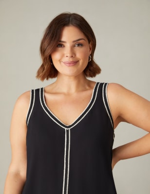 Live Unlimited London Women's Abstract Stripe V-Neck Vest - 20 - Black Mix, Black Mix
