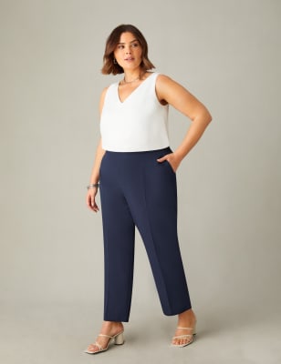 These tailored trousers from Live Unlimited London are crafted from comfortable cotton-rich fabric with a touch of stretch. They're cut to a flattering tapered fit with a comfortable mid-rise waist and a sleek hook, bar and zip fastening. Neat side pockets add a practical touch, while polished button detail at the back waist completes the sophisticated style.