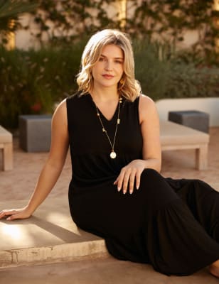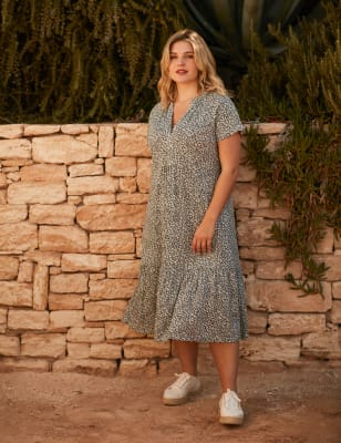 This Live Unlimited London shirt dress is crafted from soft jersey with a touch of stretch for all-day comfort. The short-sleeved piece is cut in a relaxed fit, with a smart collared neckline, a button-through fastening and a tiered, midi-length skirt. A monochrome floral print adds a striking finish.