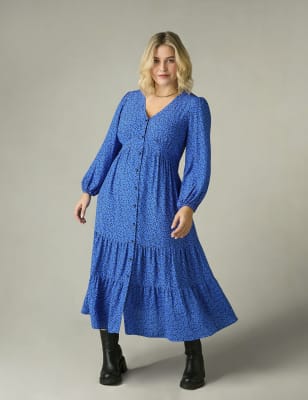 This jersey dress from Live Unlimited London is a versatile piece that will take you from day to night with ease. It's cut in a comfy relaxed fit, with a flattering v-neckline and a sleeveless bodice. The pleat below the bust creates a subtle A-line silhouette, before it flows into a swishy midaxi-length skirt.