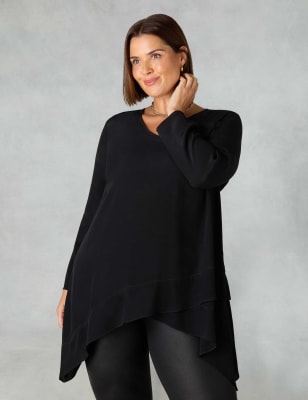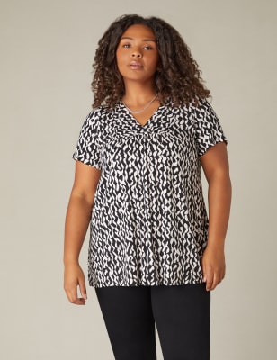 This jersey top from Live Unlimited London drapes effortlessly over the body for a flattering look. It's made to a relaxed fit, with breezy short sleeves and a gentle swing-style trapeze shape. At the bib, a cross-over front creates a feminine v-neck, while gentle gathers add extra fluidity to the design.
