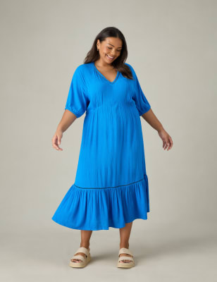 Live Unlimited London Women's Maxi Tiered Dress - 24PET - Blue, Blue