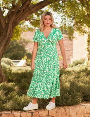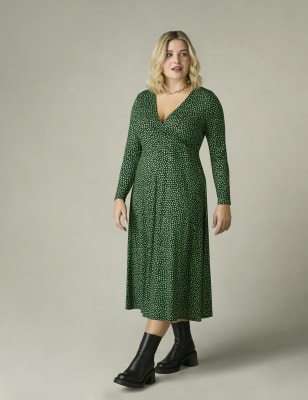 Live Unlimited London Women's V-Neck Midi Shift Dress - 24 - Green, Green