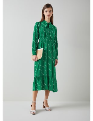 Add an artistic vibe to your smart-casual wardrobe with this striking skirt from LK Bennett. It's designed in a flattering A-line silhouette with voluminous box pleats and a stretchy waist for comfort. This flowing midi-length piece features a statement colour-block design.