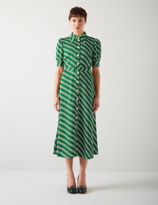 Lk Bennett Women's Geometric Metallic Square Neck Midi Dress - 6 - Green Mix, Green Mix