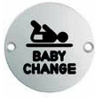 2x Bathroom Door Baby Change Sign - 64mm Fixing Centres - 76mm Dia - Satin Steel Technical Specification: Finish: Satin Stainless Steel Unit: Each Packaging: Boxed Please note this listing is for a pack containing TWO of the product. All products listed in packs are also available individually, please see our other listings or contact us Further Information: We offer a wide range of door handles, knobs, hinges, latches and accessories in various finishes and sizes. We also stock various sets of matching products, Including door handles and hinge sets, locks and latch sets, and much more. In addition to the above we can put together bespoke packages, perfect if you cannot quite find what you are looking for or need to order in bulk. Please feel free to contact us and we will be happy to put a quote together for you.