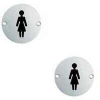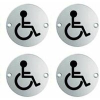 2x Bathroom Door Disabled Symbol Sign - 64mm Fixing Centres - 76mm Dia - Steel Technical Specification: Finish: Bright Stainless Steel Unit: Each Packaging: Boxed Please note this listing is for a pack containing TWO of the product. All products listed in packs are also available individually, please see our other listings or contact us Further Information: We offer a wide range of door handles, knobs, hinges, latches and accessories in various finishes and sizes. We also stock various sets of matching products, Including door handles and hinge sets, locks and latch sets, and much more. In addition to the above we can put together bespoke packages, perfect if you cannot quite find what you are looking for or need to order in bulk. Please feel free to contact us and we will be happy to put a quote together for you.