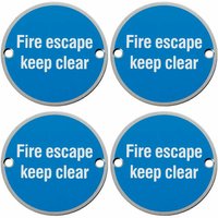 Loops - 2x Fire Door Keep Clear Sign 64mm Fixing Centres 76mm Dia Satin Steel