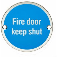 Loops - 4x Fire Door Keep Shut Sign 64mm Fixing Centres 76mm Dia Polished Steel