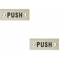 4x Rectangular Door Push Sign - 75 x 30mm Satin Stainless Steel Door Plate Technical Specification: Finish: Satin Stainless Steel Unit: Each Packaging: Boxed Please note that you are purchasing a pack containing FOUR of a product. If you are purchasing a PAIR of door handles, you will receive FOUR pairs, EIGHT door handles total. All products listed in packs are also available individually, please see our other listings or contact us Further Information: We offer a wide range of door handles, knobs, hinges, latches and accessories in various finishes and sizes. We also stock various sets of matching products, Including door handles and hinge sets, locks and latch sets, and much more. In addition to the above we can put together bespoke packages, perfect if you cannot quite find what you are looking for or need to order in bulk. Please feel free to contact us and we will be happy to put a quote together for you.