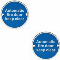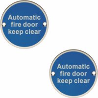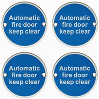 Automatic Fire Door Keep Clear Plaque - 76mm Diameter - Satin Stainless Steel Technical Specification: Finish: Satin Stainless Steel Unit: Each Packaging: Boxed Further Information: We offer a wide range of door handles, knobs, hinges, latches and accessories in various finishes and sizes. We also stock various sets of matching products, Including door handles and hinge sets, locks and latch sets, and much more. In addition to the above we can put together bespoke packages, perfect if you cannot quite find what you are looking for or need to order in bulk. Please feel free to contact us and we will be happy to put a quote together for you.