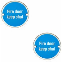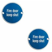 Loops - Fire Door Keep Shut Sign 64mm Fixing Centres 76mm Dia Polished Steel