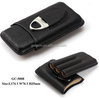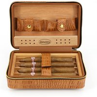 MLT125 Cedar Wood Travel Portable Leather Cigar Case with Humidifier, Lighter, Cigar Cutter Cigar Case Humidor