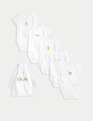 Stock up on babywear essentials with this handy ten-pack of pure cotton bodysuits. Wide envelope necks and popper fastenings make dressing easier, while the short-sleeved style is ideal for layering. We only ever use responsibly sourced cotton for our clothes.