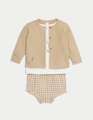 With its adorable Paddington™ design, this knitted outfit is the perfect choice for days out. Includes a long-sleeved top and a pair of leggings. The top fastens with buttons at the back. The leggings feature a comfy elasticated waistband.