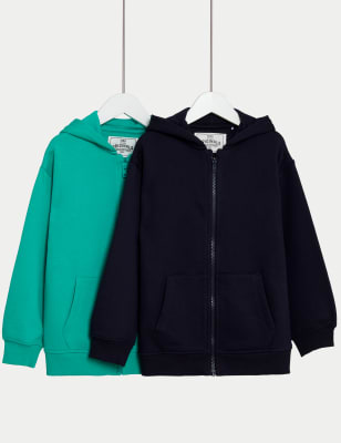 M&S 2pk Cotton Rich Zip Hoodies (6-16 Yrs) – 7-8 Y – Black Mix, Black Mix,Navy Mix
