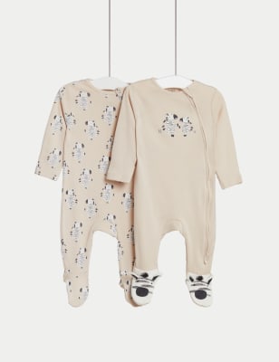 M&S 2pk Pure Cotton Lion Sleepsuits (6½lbs-3 Yrs) – TINY – Ivory Mix, Ivory Mix