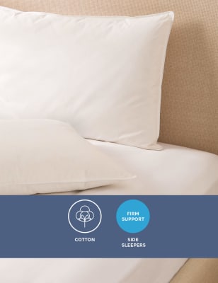 Envelop yourself in the exquisite comfort of our pure cotton Ultimate Comfort pillows. Each one is filled with smooth fibres and has a firm feel to support your head and align your spine while you sleep. These pillows have a luxurious 250 thread count cover and are made in Great Britain.