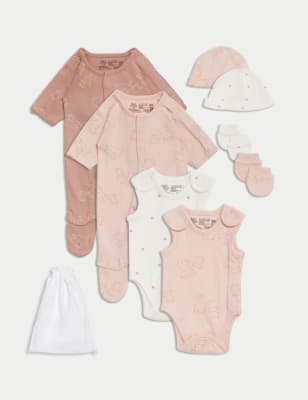 Make dressing your premature baby a breeze with this handy eight-piece cotton-rich starter set. Comprises two sleepsuits, two bodysuits, two pairs of scratch mitts and two hats. The sleepsuits feature a riptape opening that lies flat for easy changing, plus an opening at the feet for easy medical access. All items are designed with flat seams and soft printed labels to be gentle on delicate skin.