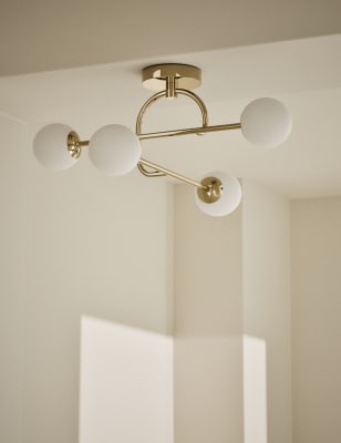 Add art deco-inspired style to your home with our Amelia ceiling light. It features a curved glass shade with an attractive ribbed texture and is finished with gleaming metalwork. Choose between our colourways to illuminate your space with a soft glow.