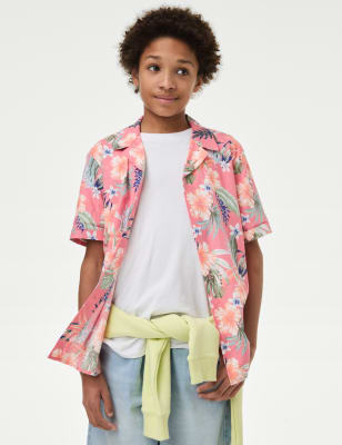 This two-piece cotton-rich shirt and t-shirt set is perfect for shark enthusiasts. Comfy regular fit. The short-sleeved shirt features a smart collared neckline and a button-through fastening. It's decorated in a playful all-over shark print. Pair with the plain short-sleeved, crew-neck t-shirt.