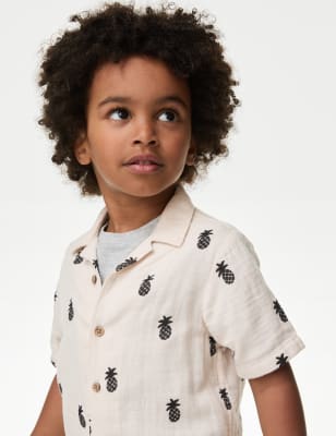 M&S Boys 2pc Pure Cotton Printed Shirt and T-Shirt (2-8 Yrs) - 2-3 Y - Cream Mix, Cream Mix