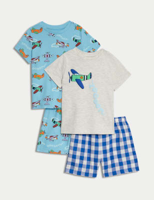 These cotton-rich pyjamas are a fun choice for young gamers. Two-pack of short-sleeved t-shirts and shorts with a comfy elasticated waist, all cut in a comfy regular fit. One set features a cool gaming graphic on the top and the other has an all-over print.