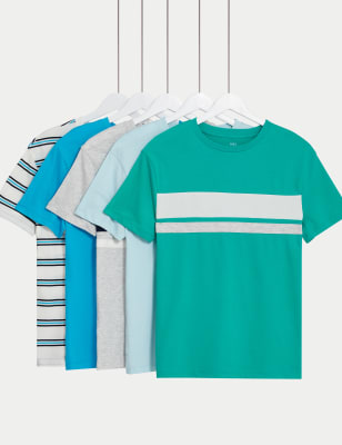 M&S Boys 2pk Pure Cotton Plain & Striped Tops (0-3 Yrs) – 18-24 – Multi, Multi
