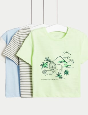 M&S Boys 3pk Pure Cotton Colourblock T-shirts (2-8 Years) – 2-3 Y – Multi, Multi