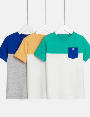 M&S Boys 3pk Pure Cotton Dinosaur T-Shirts (2-8 Yrs) – 2-3 Y – Multi, Multi