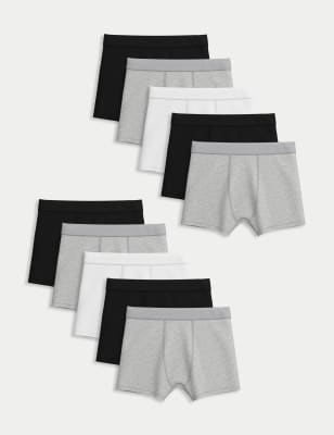 Stock up on their essentials with this handy seven-pack of cotton-rich trunks. Made with added stretch for comfort. Pack features pairs in two different block colours, each with a sporty striped waistband.