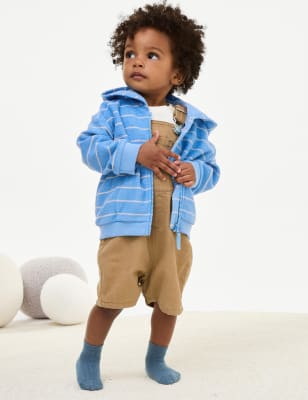 M&S Boys Cotton Rich Colour Block Hoodie (2-8 Yrs) – 2-3 Y – Blue Mix, Blue Mix