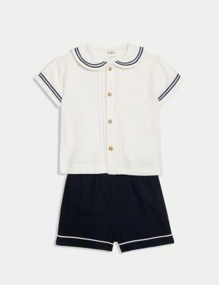 M&S Boys Cotton Rich Shark Print Shorts (2-8 Yrs) – 2-3 Y – Navy Mix, Navy Mix
